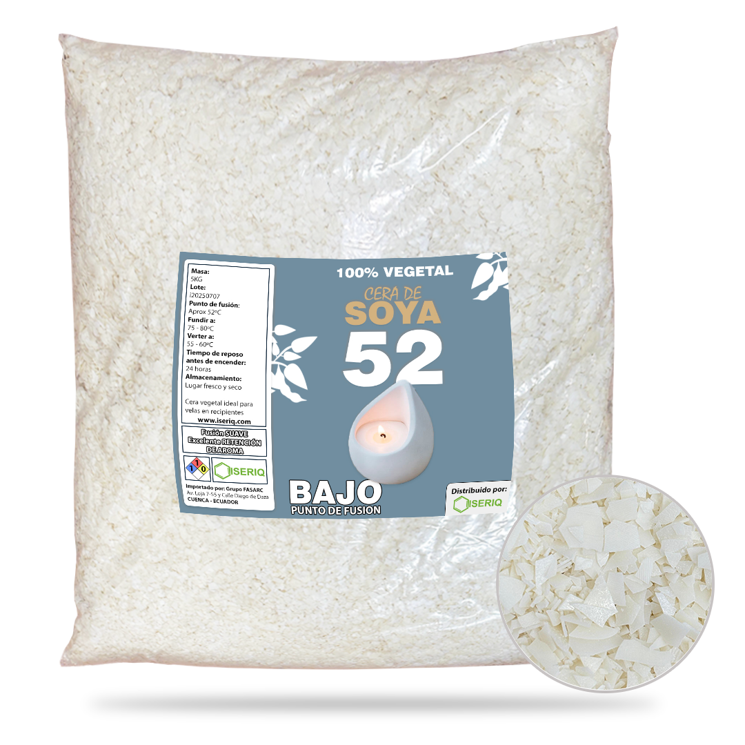 Cera 100% vegetal ideal para velas en envases o recipientes. Su bajo punto de fusión facilita una excelente adhesión al vaso y un quemado uniforme, suave y sin humo. Recomendado para climas templados o fríos.