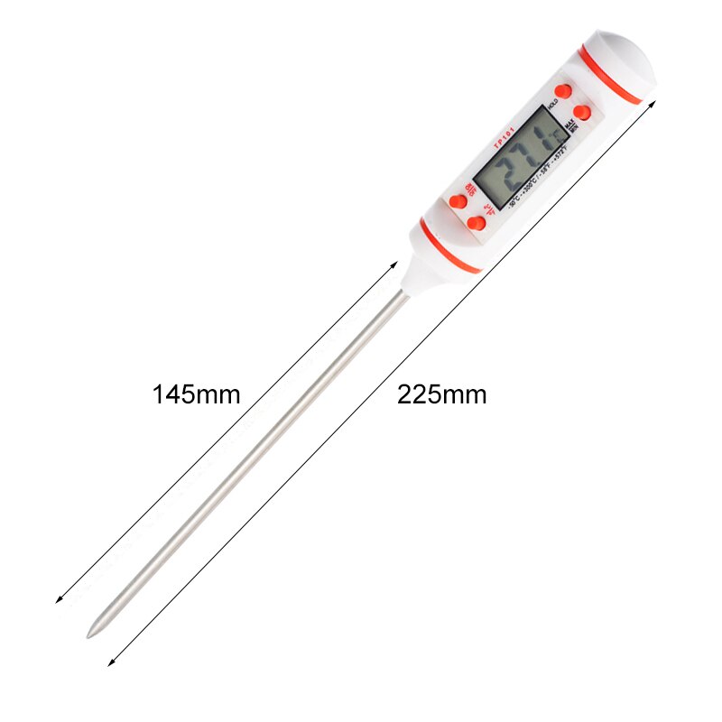 This kitchen thermometer features a 145mm long, food-grade 18/8 stainless steel probe to keep your hands away from the heat and prevent dangerous situations. The probe tip should be placed in the thickest part of the food, but not touching it, as this conducts heat and underestimates the temperature.