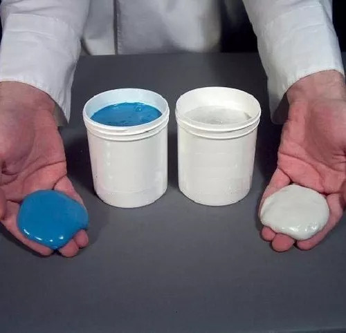 It is a type of two-component putty that works in a 1:1 ratio.