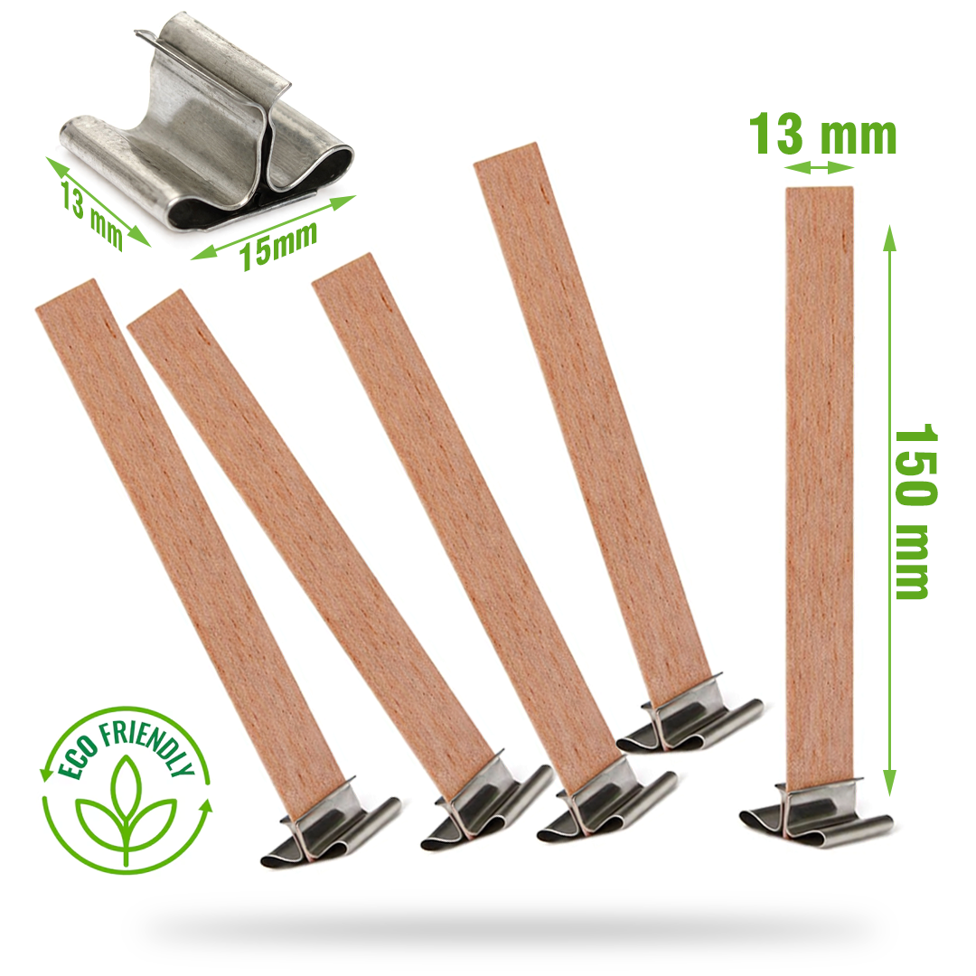 Natural Wooden Wicks with Base 15cm – 5 pcs