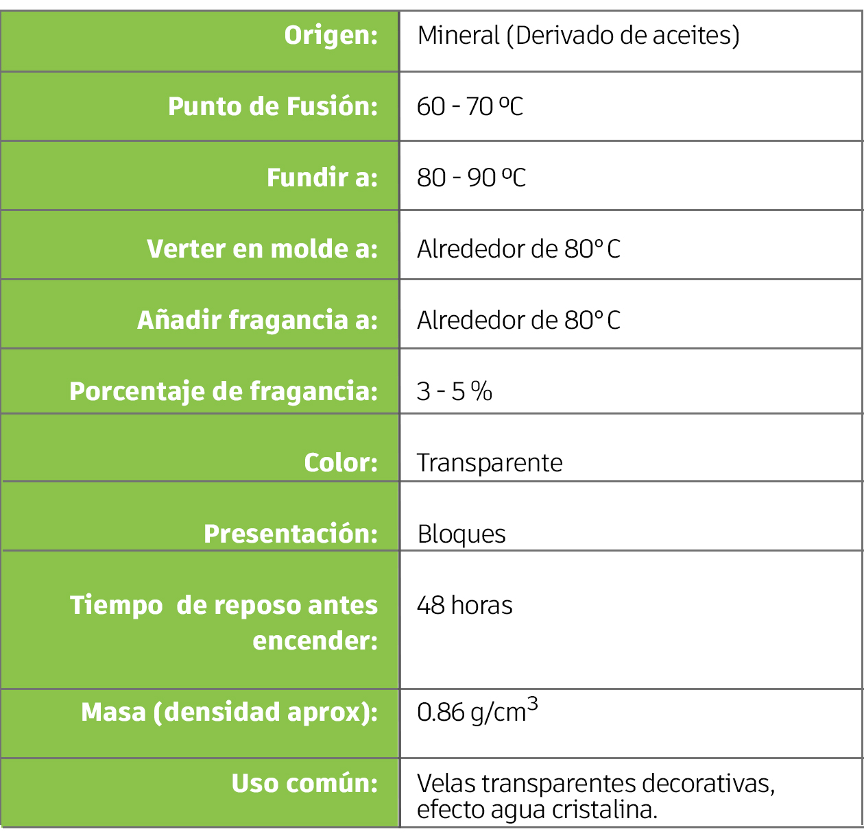 Es perfecta para la elaboración de velas en recipientes, velas decorativas tipo "gel", encapsulados, diseños con inclusiones y aplicaciones creativas donde se requiere una cera moldeable y de fácil manipulación.