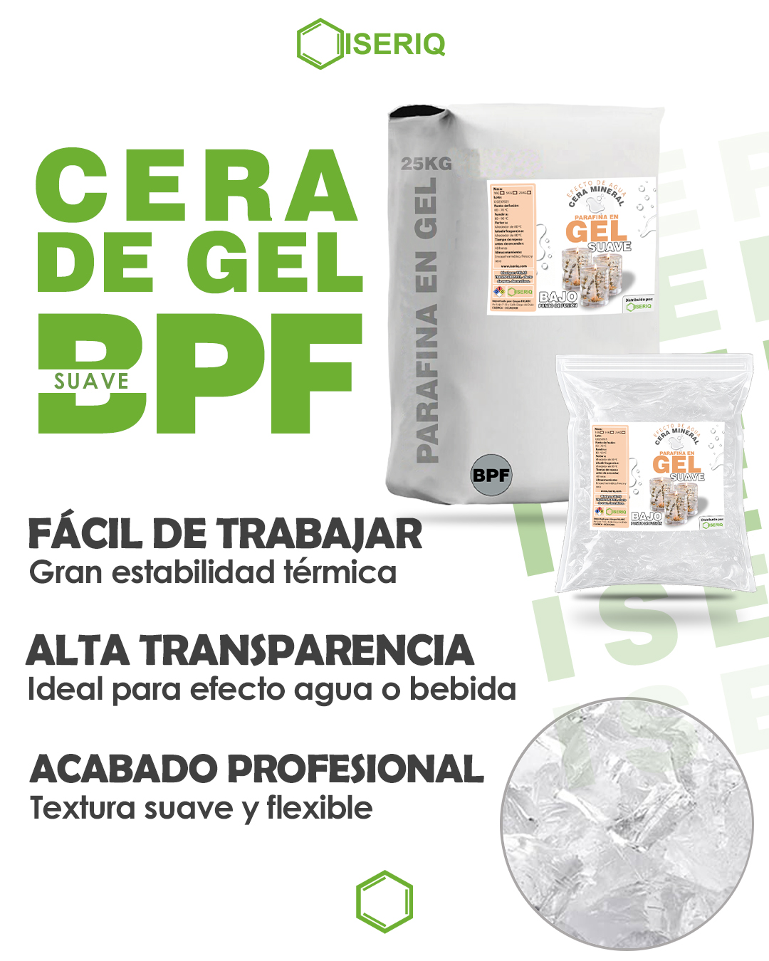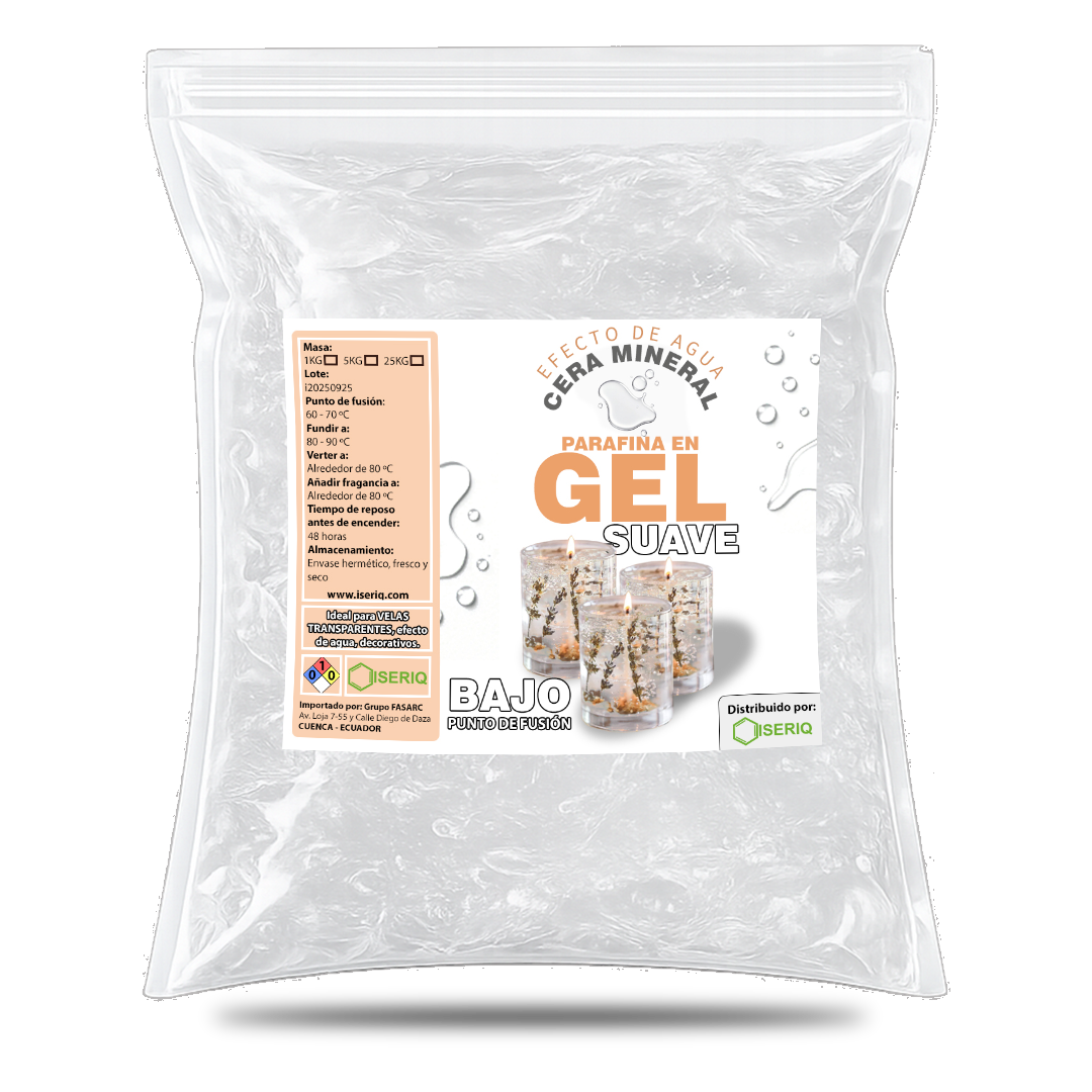 Nuestra cera de parafina en gel suave es un material altamente transparente, flexible y de bajo punto de fusión, ideal para proyectos decorativos y artesanales donde se busca un acabado limpio, cristalino y fácil de trabajar. Su textura suave permite cortes sencillos, mezclas rápidas y un excelente anclaje de mechas, colorantes y fragancias.