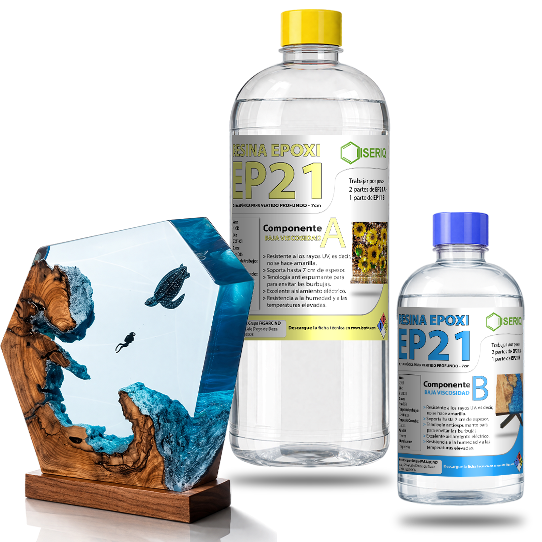A transparent, two-component product that works in a 2:1 weight ratio and cures at room temperature. It is composed of Component A and Component B in a low viscosity and is very easy to work with.
