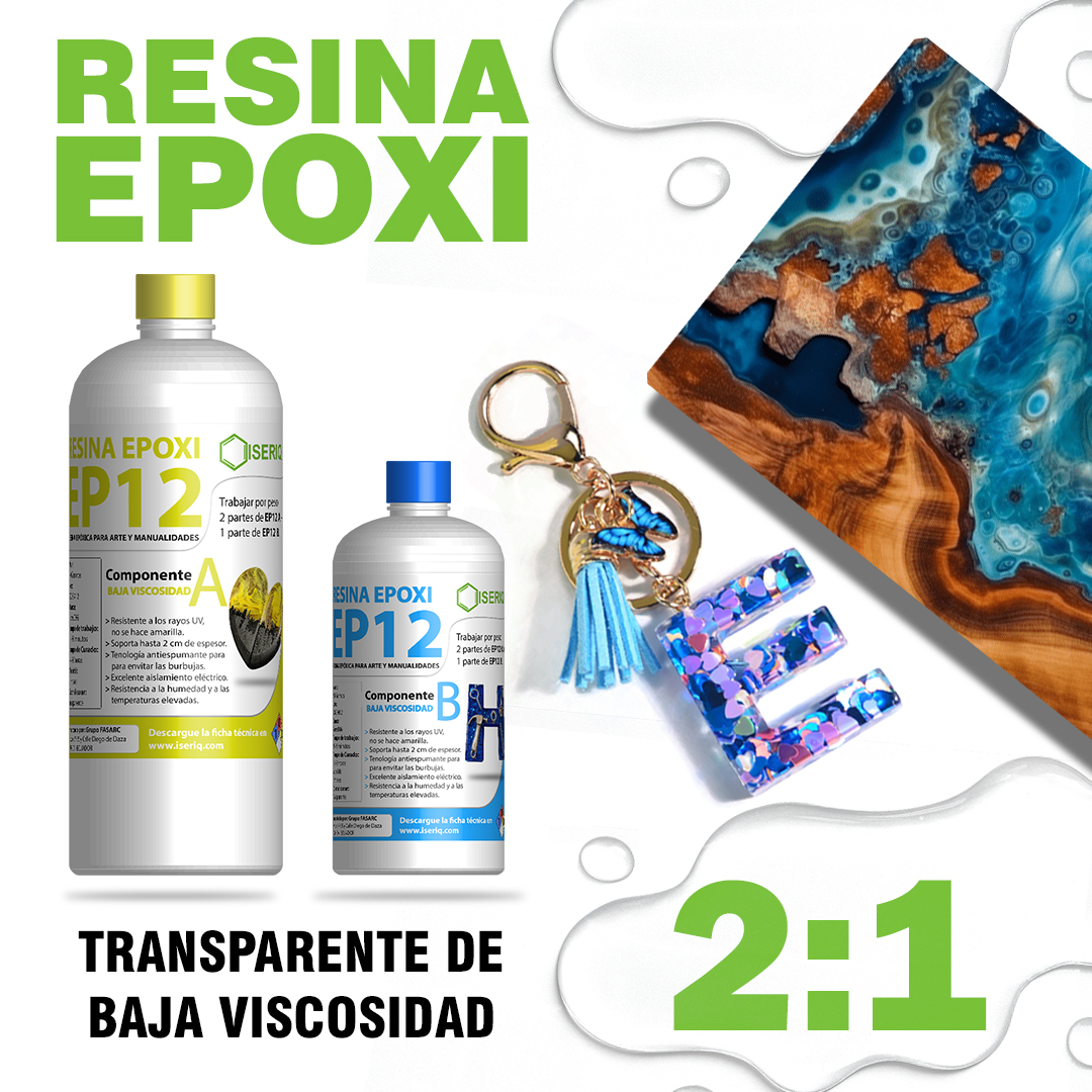 La Resina Epoxi EP12 de ISERIQ es una fórmula artística de mezcla 2:1 (resina:endurecedor), especialmente diseñada para recubrimientos, piezas decorativas, joyería y arte en resina. Su acabado ultra cristalino y autodesnivelante ofrece un brillo vítreo, ideal para trabajos detallados y creativos.