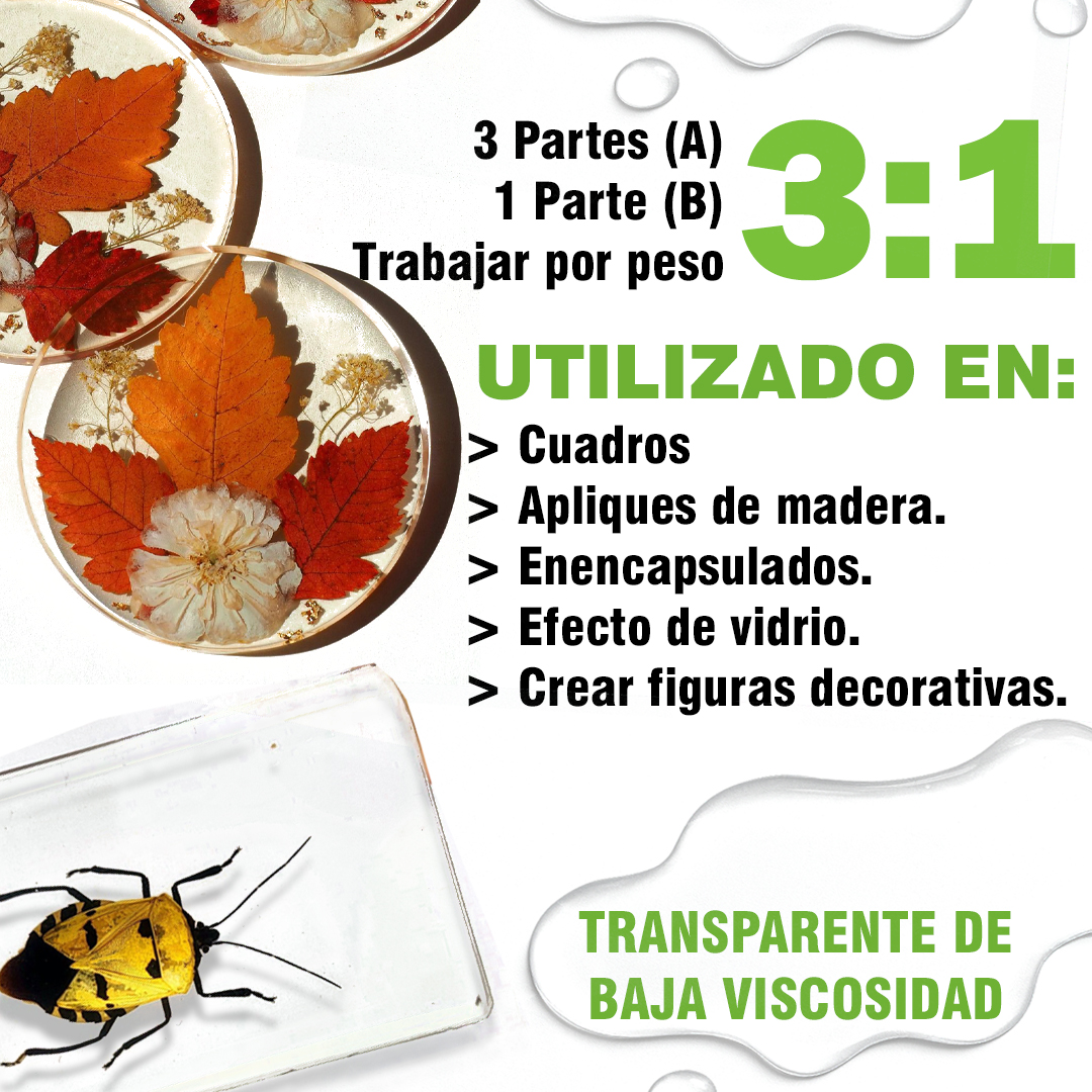 que trabaja en proporción 3:1 y cura a temperatura ambiente. Está compuesta por