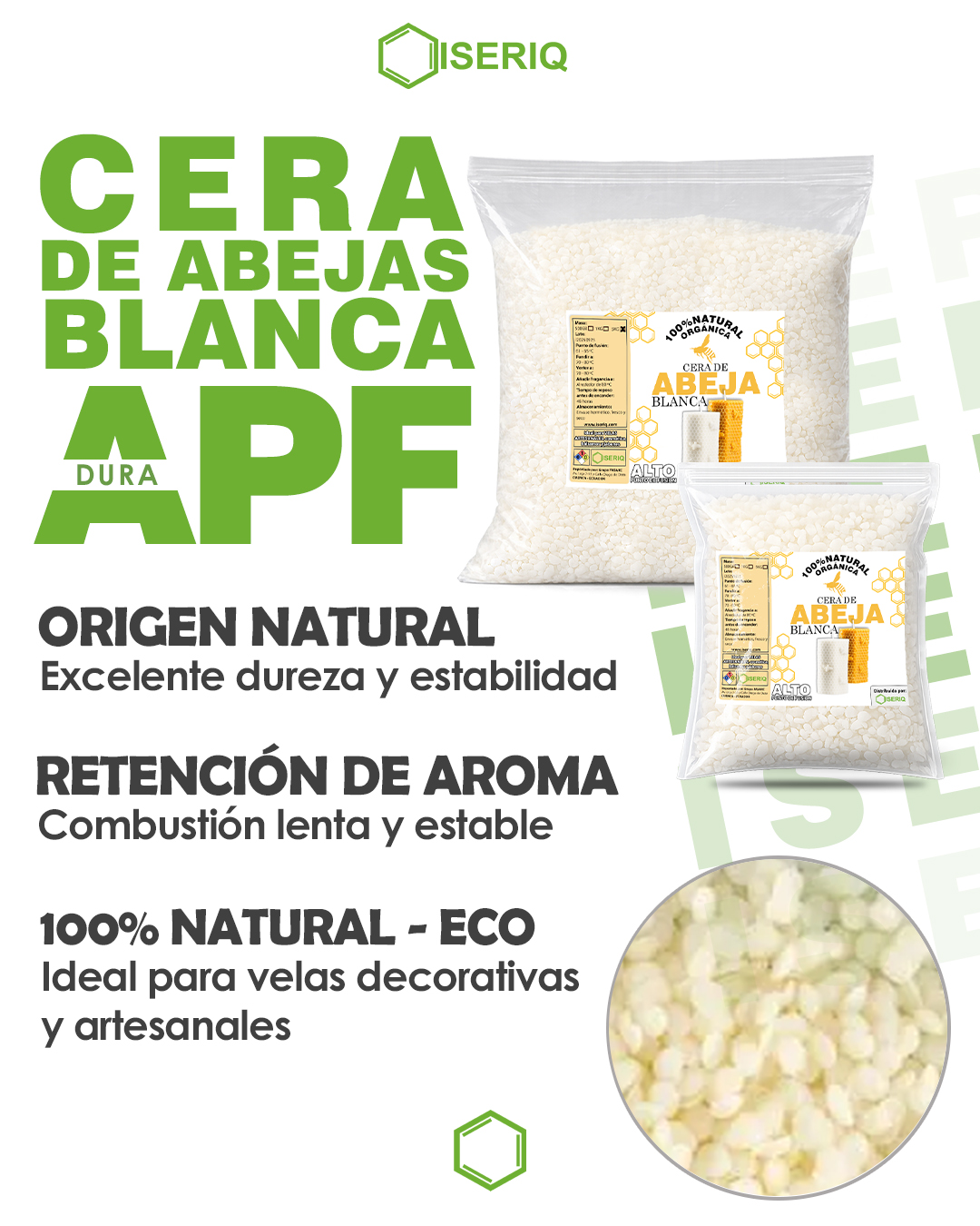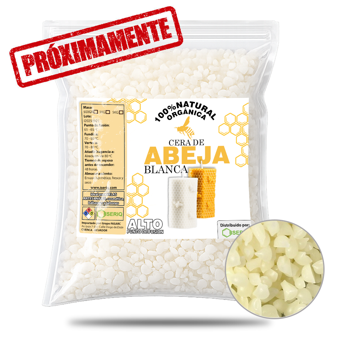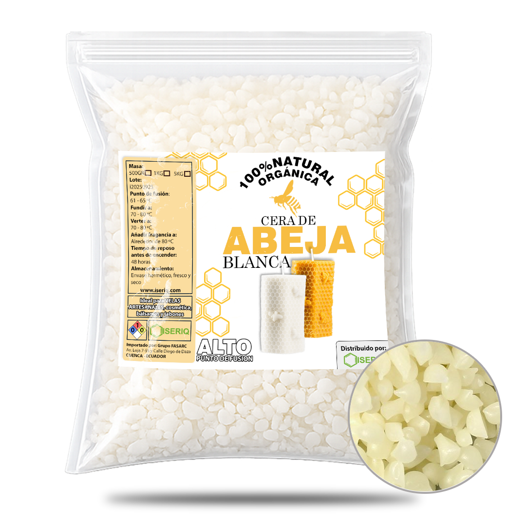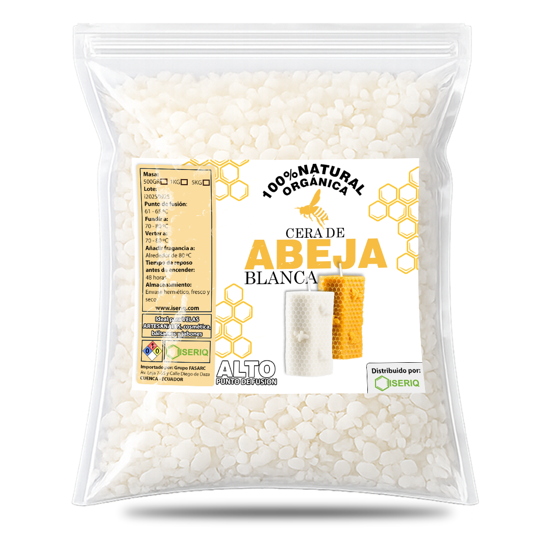 White beeswax is a 100% natural material, purified and refined to obtain a light color without losing its original properties. It is widely valued for its high stability, delicate aroma, and long burn time.