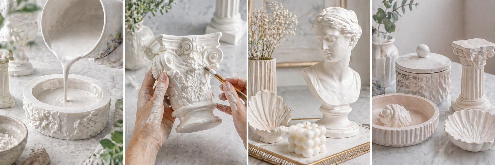 El color del yeso es blanco hueso, pero puede obtener diferentes colores utilizando pigmentos.